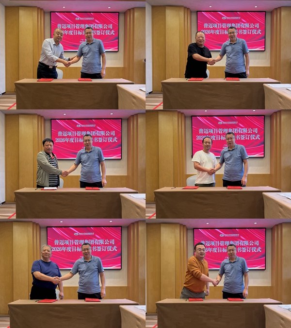 为明确2026年度工作目标,压实经营管理责任,凝聚全员攻坚合力,2025年12月7日,普迈项目管理集团有限公司举行了2026年度目标责任书签订仪式。公司董事长兼总经理景亚杰等高层领导及各职能部门、核算部门经理参会。