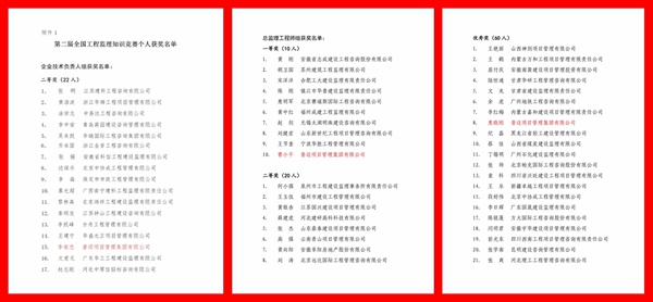 在本届比赛中,公司李安忠、曹小平、惠晓刚三名选手作为陕西省参赛队员征战全国决赛,最终斩获佳绩:李安忠荣获企业技术负责人组二等奖,曹小平荣获总监理工程师组一等奖,惠晓刚荣获青年组优秀奖!